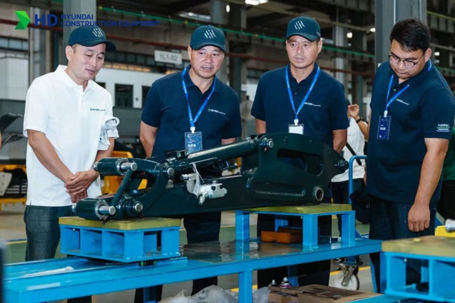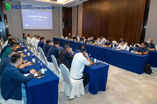 在溝通交流環節,來自安徽阜陽的張老板,作為一個擁有20多臺現代設備的老客戶表示,多年來現代設備使用總體很滿意,服務較好。本次現場觀摩的39噸設備性能及工藝水平較高,表示有繼續購買的計劃。來自北京的客戶則對新品輪挖HW155設備性能給予高度評價,同時也希望公司能開發更多品類的輪挖產品,供客戶選擇。公司領導認真聽取了客戶的意見和建議,表示會認真研究,努力對應,爭取給客戶一個滿意的答復。